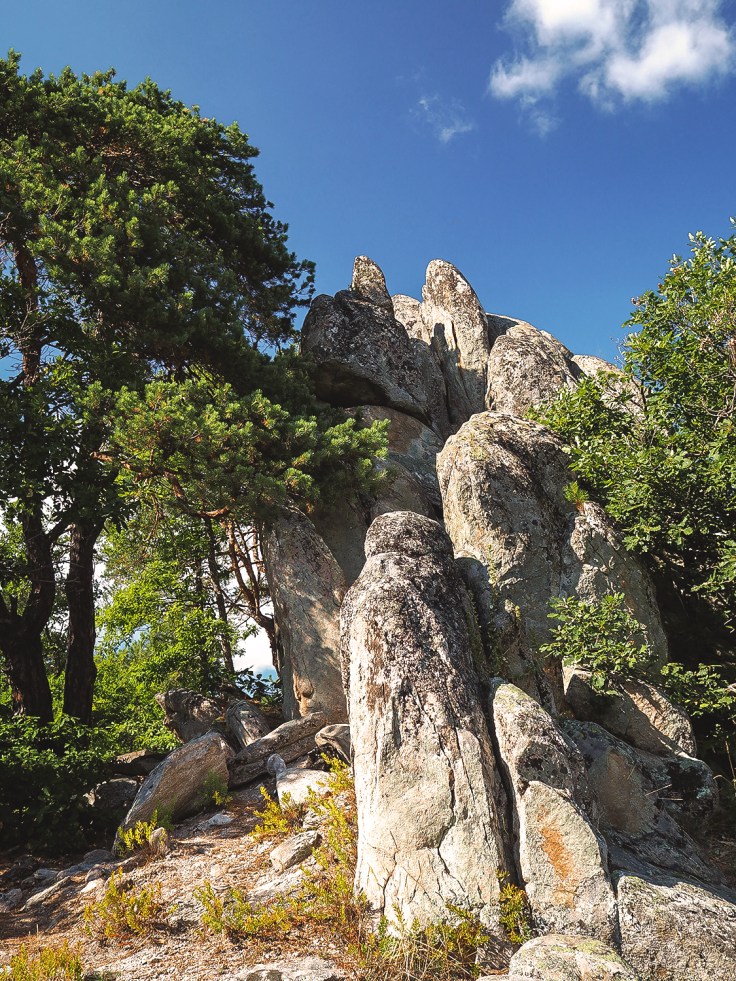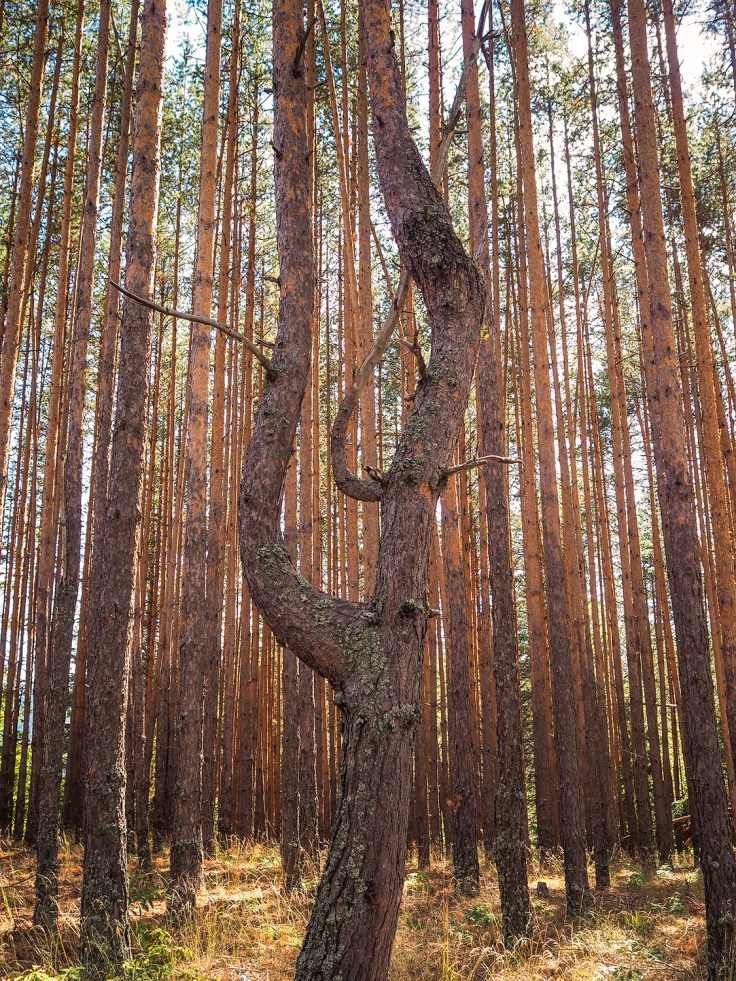 А ако обичате да си поспивате, като нас, може да тръгнете и по обед (като нас), защото денят е дълъг. Така имахме късмета да се любуваме на по-слабо слънце и повече сянка по пътеката, след 13:00 ч. слънцето вече не печеше точно отгоре над нас, а пускаше лъчите под такъв ъгъл, че да подчертае силуетите на боровете и да освети изобилстващия зелен мъх. Видяхме един два огромни марвуняци, които са признак на много чист въздух.