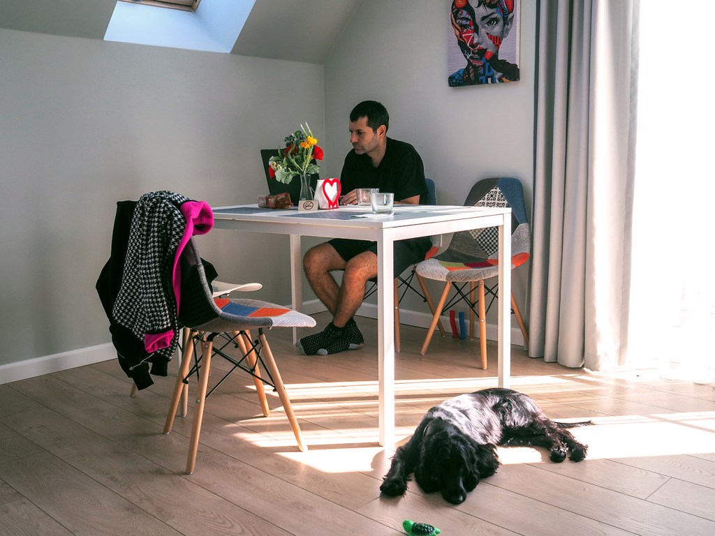 Намерих апартамент в много хубав малък, нов хотел на име The House. Не е обичайният нискобюджетен вариант, който търсим обикновено, дори искаха доста допълнително заплащане за кучето, но решихме да се поглезим 🙂 Апартамент номер 7 е на последния етаж в The House, в квартал Каменица, с тераса с най-хубавата гледка, от нея се виждаха и Милеви скали, много приятна светлина от капандурите във всички стаи, включително и банята. Има голям хол с кухненски бокс, тераса с маса за кафе, и спалня и баня. Много хубав семпъл дизайн. Само картината на стената не ми хареса 🙂