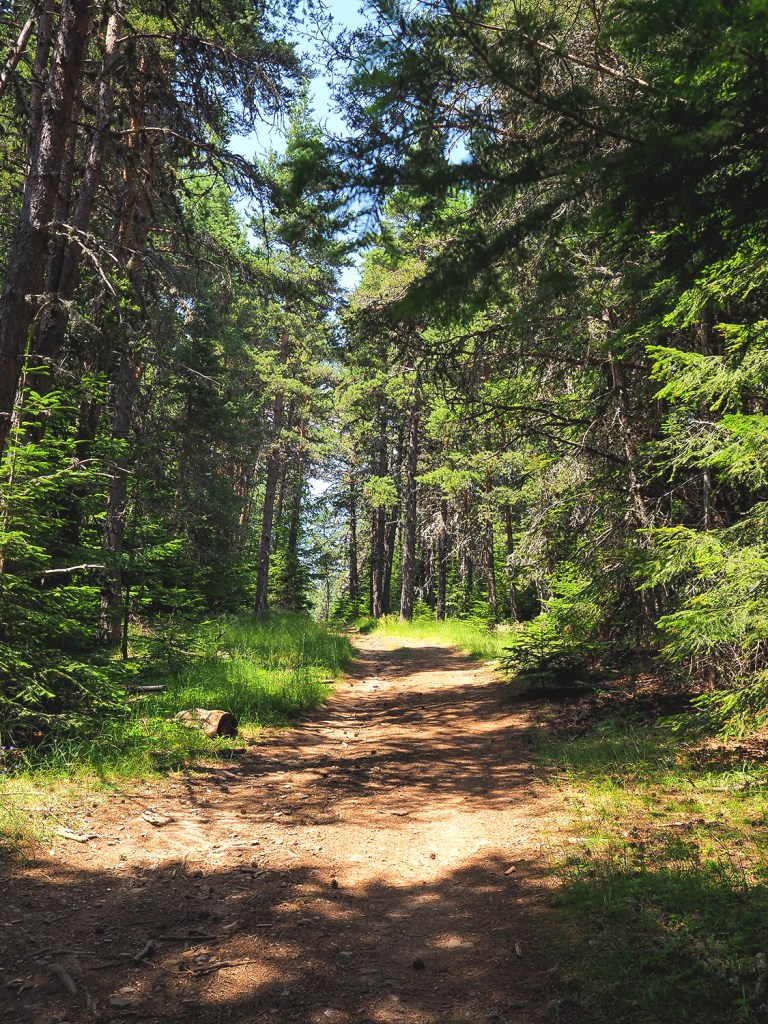 В началото на маршрута от двете страни често се срещат тучни полянки с цветя, удобни за бивак. Преобладава иглолистна гора.
